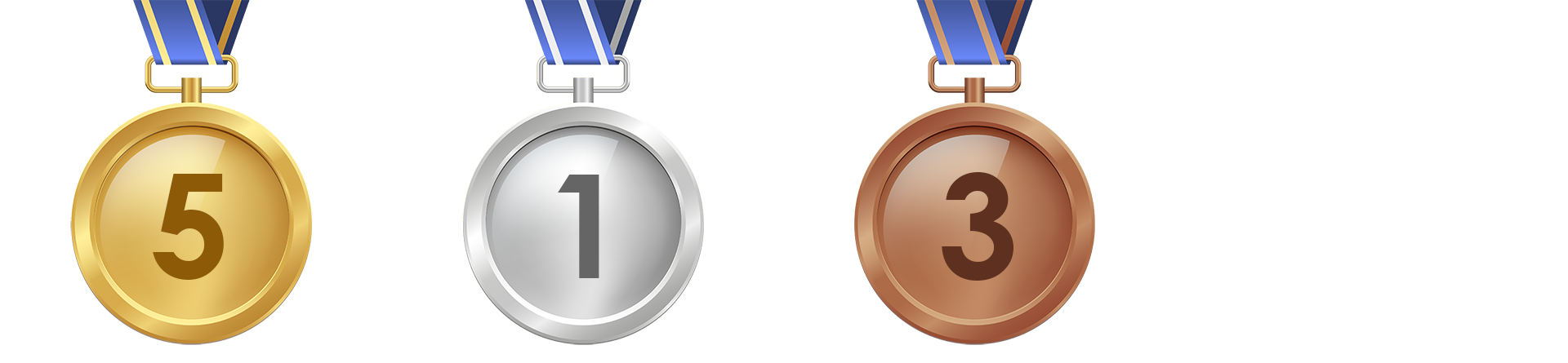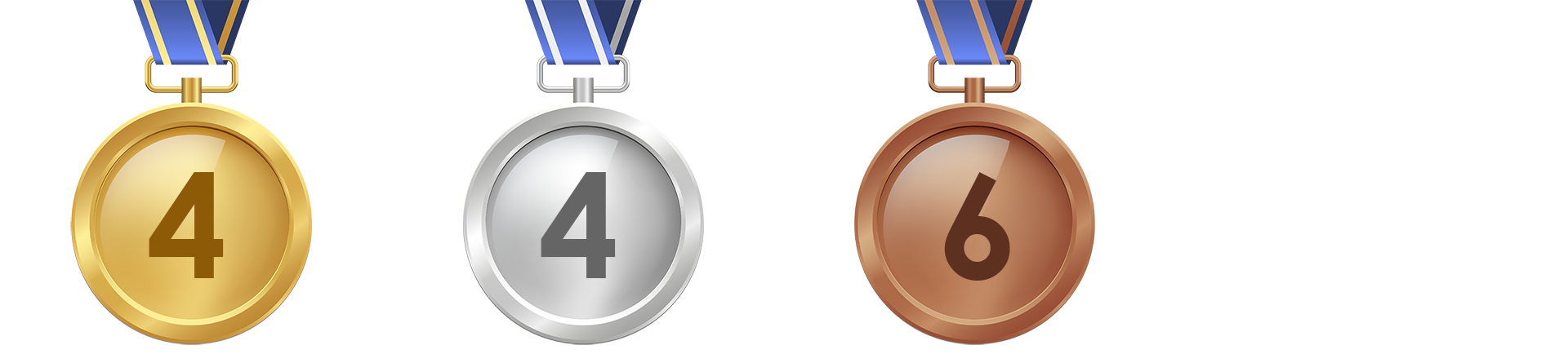 Uma medalha de ouro, uma medalha de prata e uma medalha de bronze.