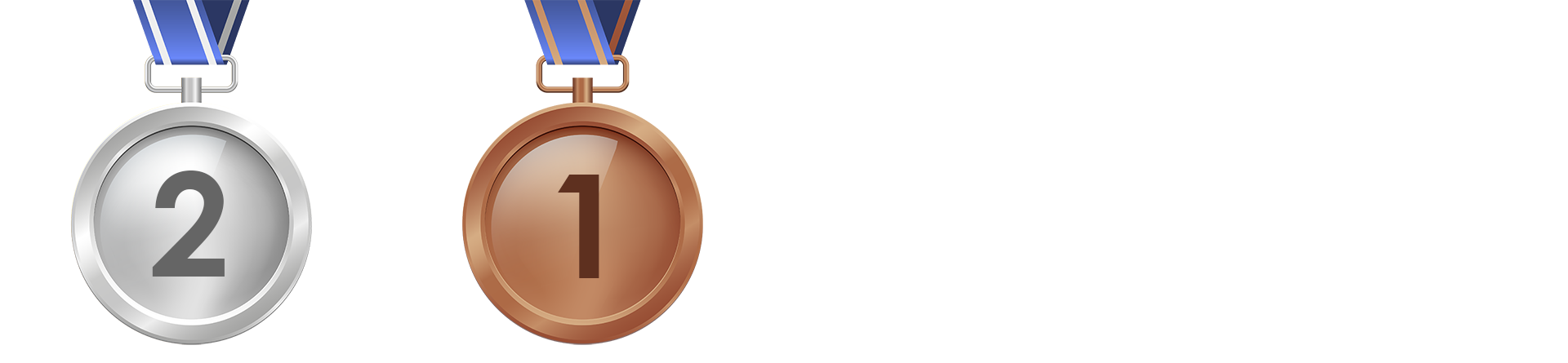 Duas medalhas de prata e uma medalha de bronze.