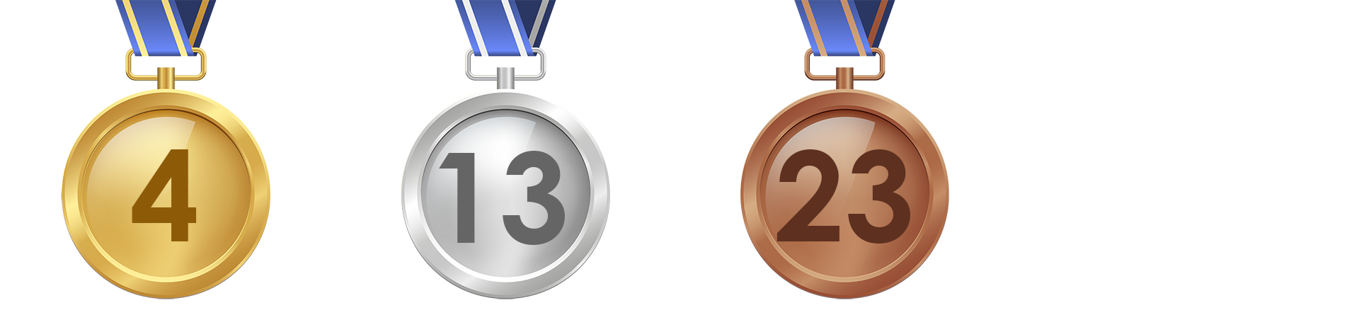 Quatro medalhas de ouro, 13 medalhas de prata e 23 medalhas de bronze.