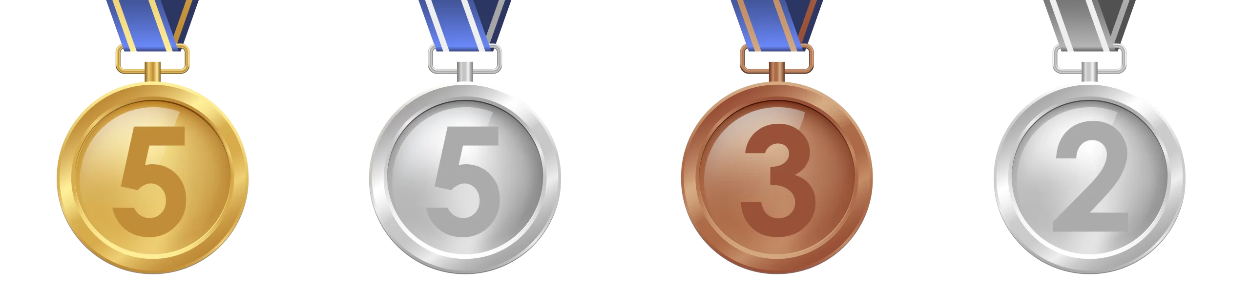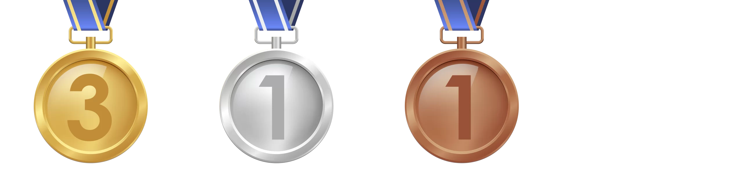 Três medalhas de ouro, uma medalha de prata e uma medalha de bronze.